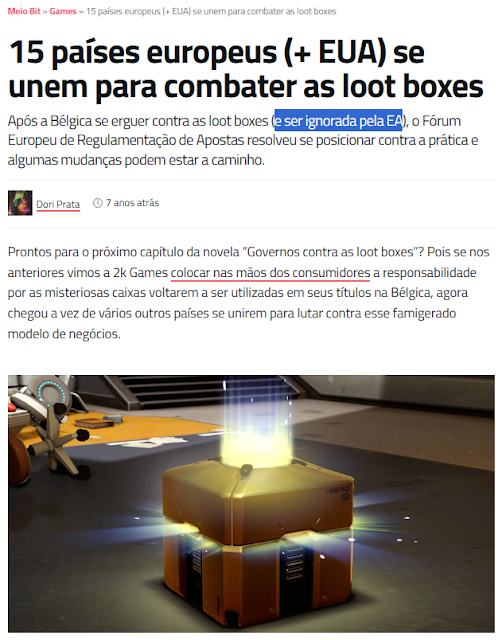 A Electronic Arts – conhecida pelos íntimos como EA – é uma empresa conhecida no mundo todo por suas práticas abusivas com loot boxes.